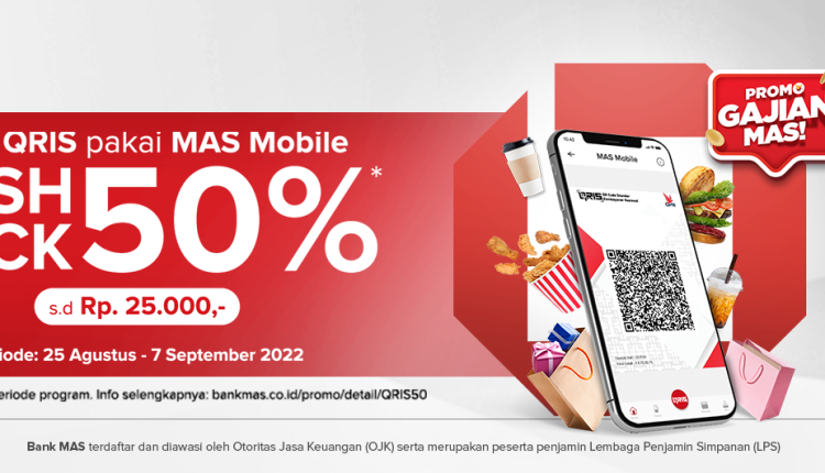 Dikutip dari situs Bank MAS, nasabah yang bertransaksi atau melakukan pembayaran menggunakan QRIS melalui mobile banking Bank MAS (MAS Mobile) akan berhak mendapat cashback. Cashback yang diberikan adalah 50% dengan maksimal Rp25 ribu.