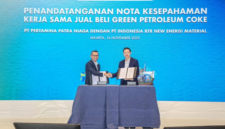 Sebagai produsen, Pertamina Patra Niaga akan menyuplai green petroleum coke untuk memenuhi kebutuhan PT Indonesia BTR. Dalam Nota Kesepahaman antara kedua pihak, Kamis (16/11/2023), new energi material tersebut bakal mencapai 100.000 Metrik Ton (MT) per tahun.