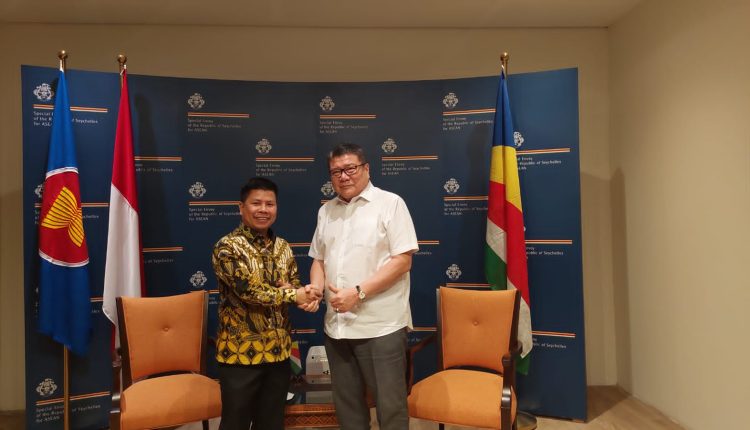 Jakarta – Bupati Sambas, Kalimantan Barat, H. Satono dan Duta Besar (Dubes) Seychelles Utusan Penuh Presiden Afrika Selatan Nico Barito melakukan pertemuan di Kedutaan Besar Seychelles di Jakarta, pada Kamis, 9 Maret 2023. Selain untuk bersilaturahmi, pertemuan itu juga untuk mambahas potensi investasi sektor perikanan di Kabupaten Sambas.
