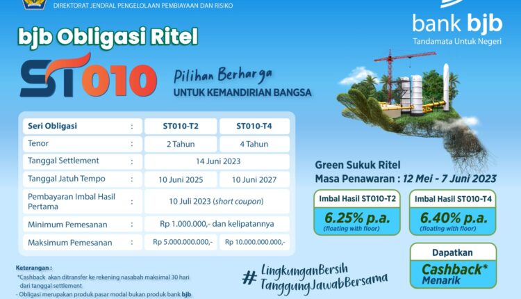 Bandung – Bagi Anda yang menunggu hadirnya investasi aman dan menarik, tak ada salahnya memanfaatkan penawaran SBN Ritel Sukuk Tabungan Seri 010 (ST010). Selain aman dan terjamin, sukuk tabungan ini juga menawarkan imbal hasil menarik dengan program cashback.
